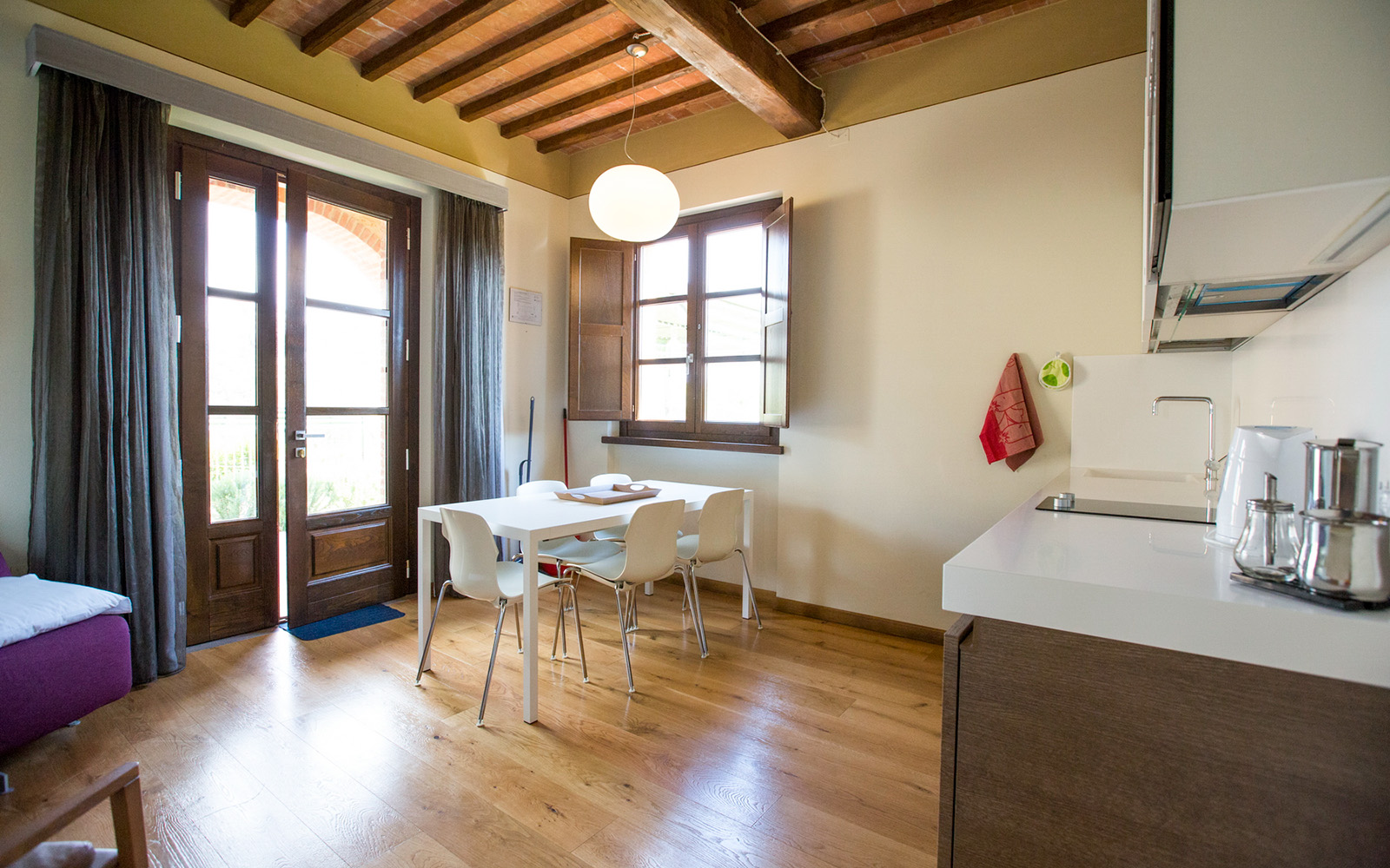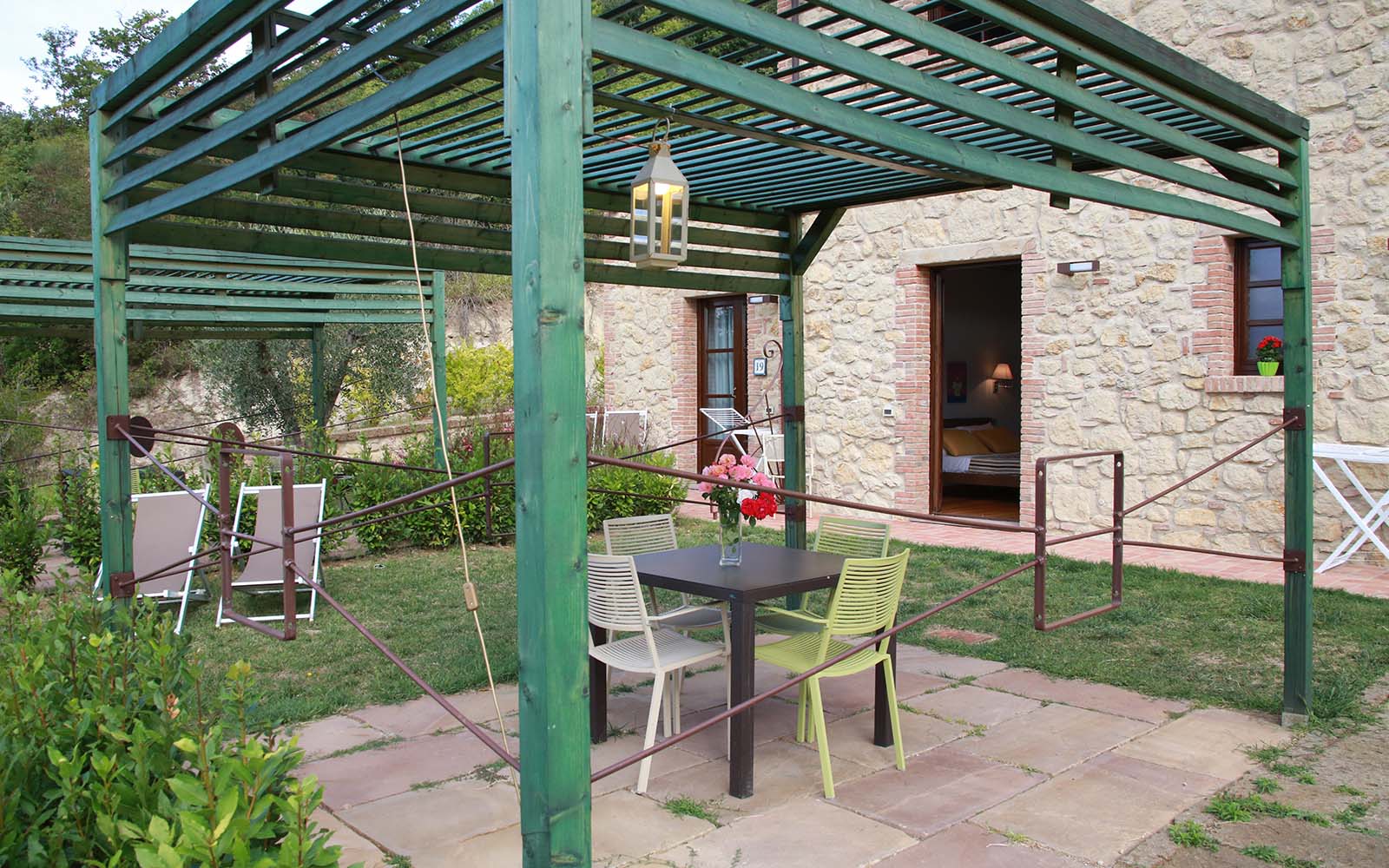 I nostri appartamenti hanno tutti un grazioso spazio esterno panoramico ( terrazza o giardino) curato nel dettaglio, copertura o ombrellone, tavolo, sedie dove potrete degustare un ottimo vino rosso godendovi tutta la magia dei tramonti toscani.