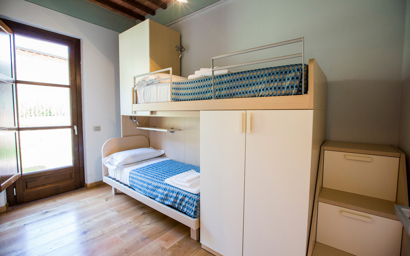 Ampio appartamento trilocale composto da soggiorno / cucina, camera matrimoniale, camera con letto a castello, letto singolo in soggiorno, bagno.