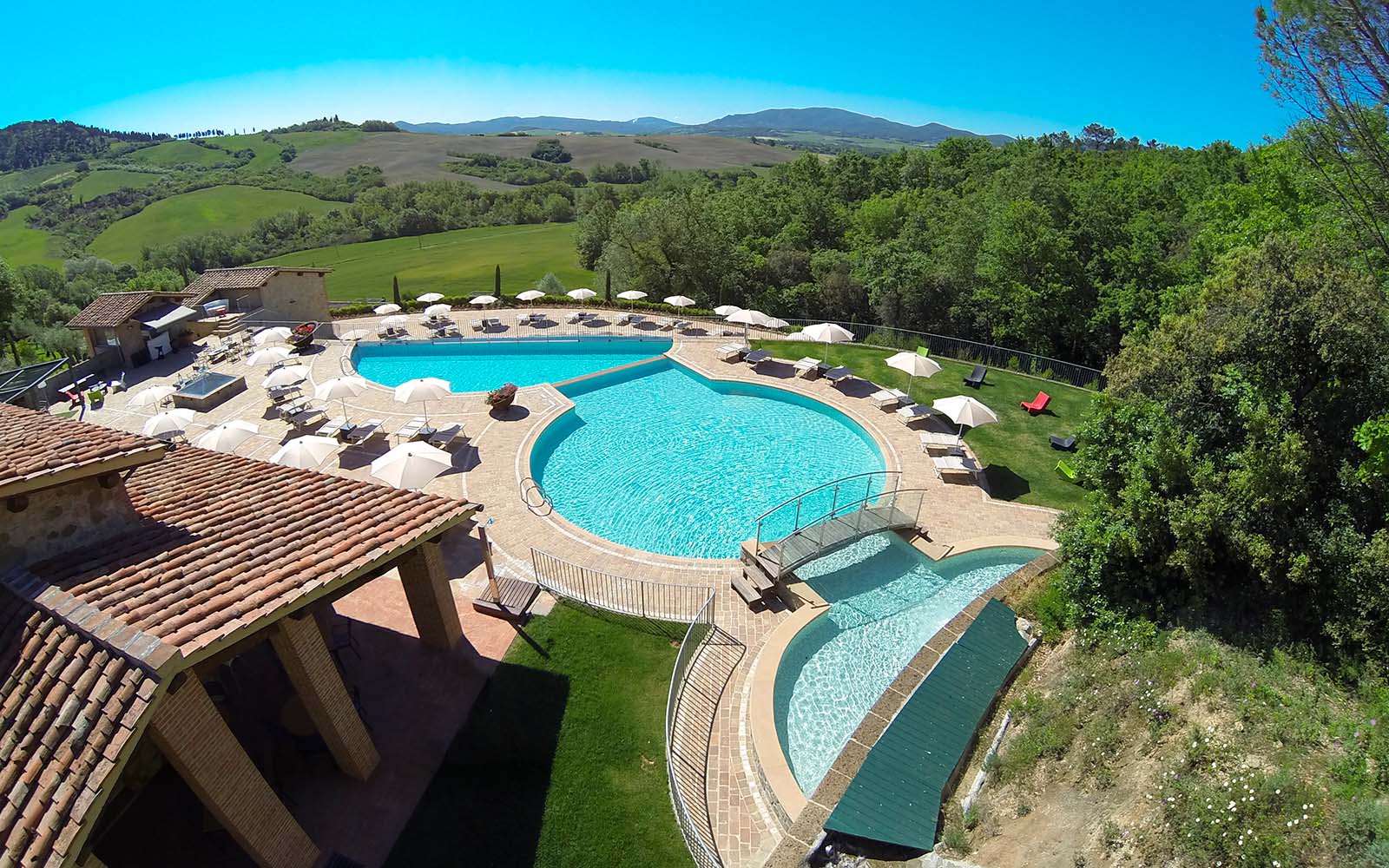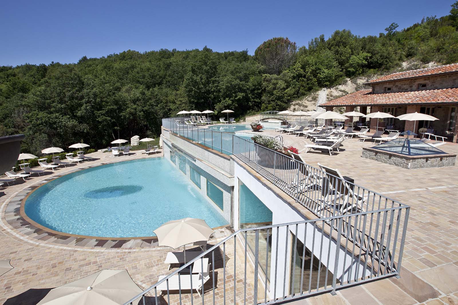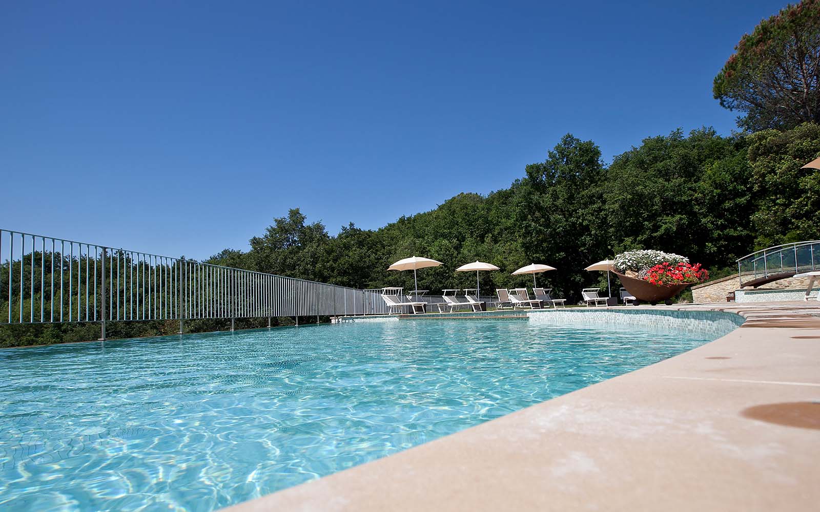 Fonte alla Lepre è un bellissimo Resort in Toscana con piscina che si trova pochi passi dalle residenze, fra le colline della campagna Toscana e il tramonto. Due livelli per tre vasche le cui acque arrivano direttamente dal sottosuolo grazie a una sorgente antica che sgorga qui da migliaia di anni. Il mormorio della cascata accompagna gli ospiti per tutta la giornata e fa da sottofondo ai momenti di relax a bordo piscina.