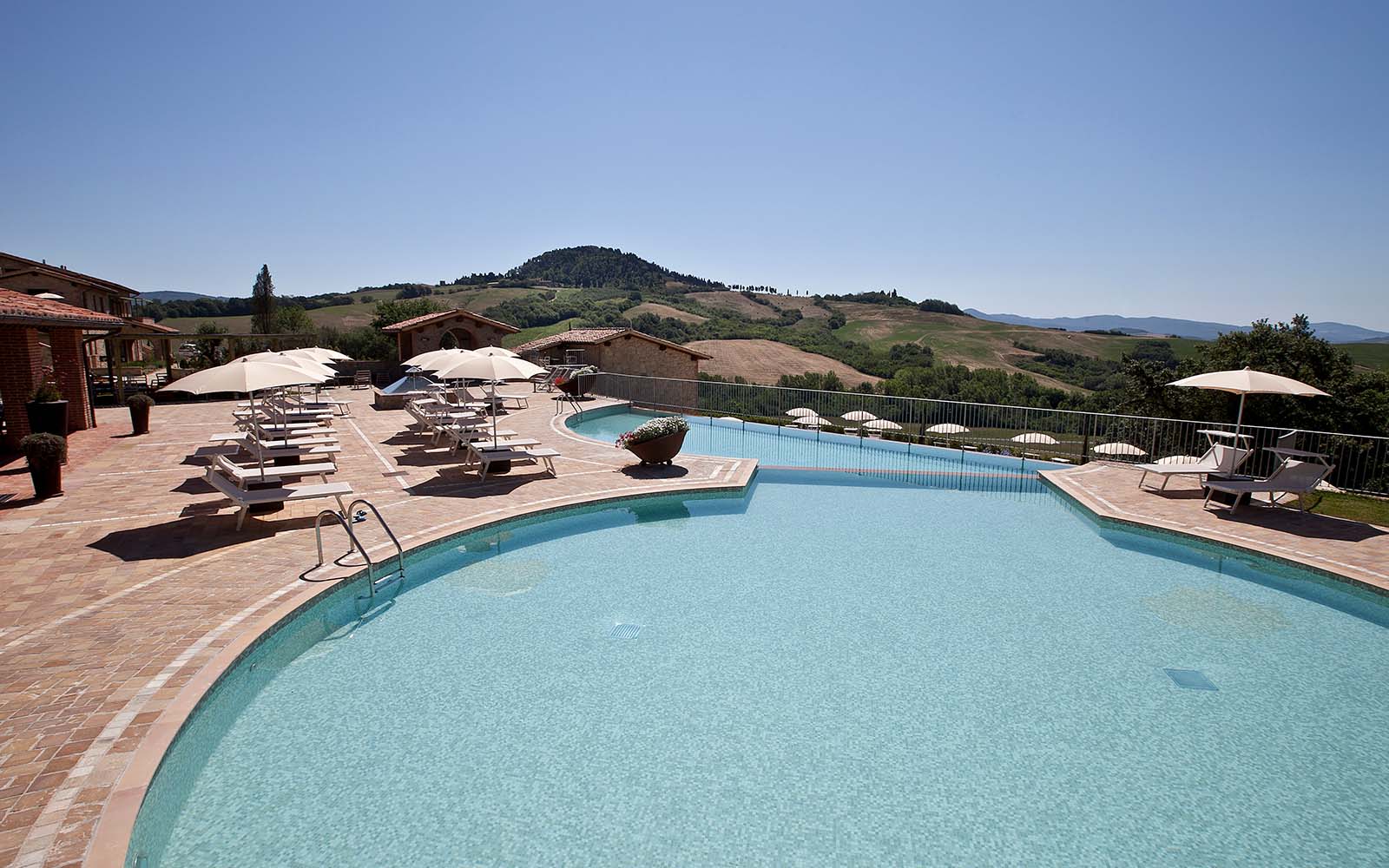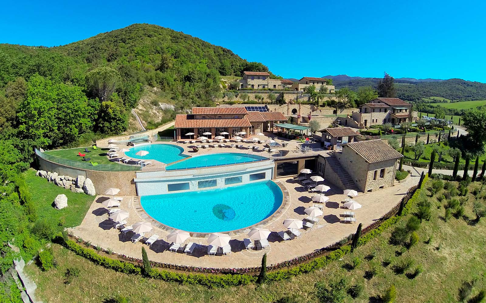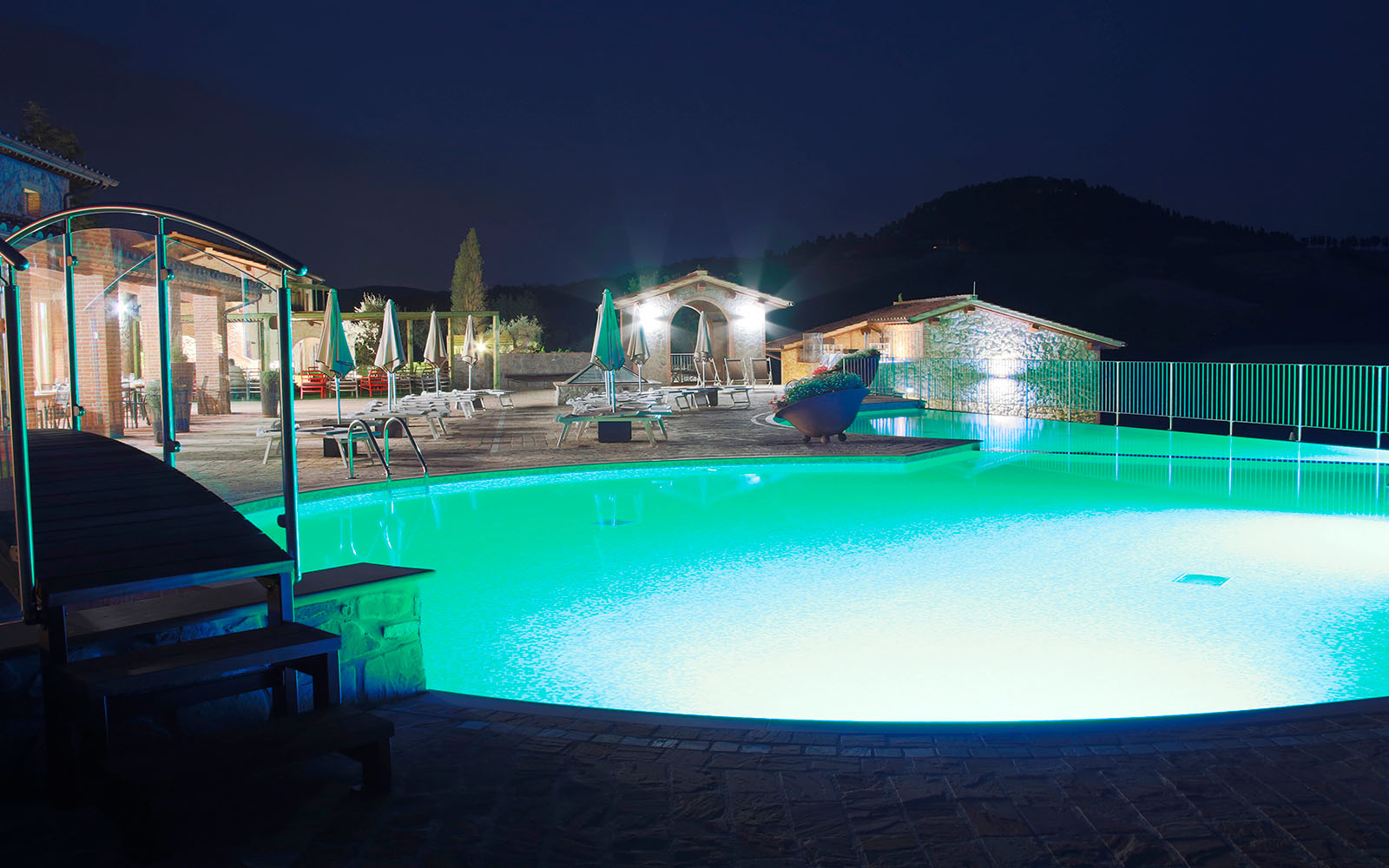Fonte alla Lepre è un bellissimo Resort in Toscana con piscina che si trova pochi passi dalle residenze, fra le colline della campagna Toscana e il tramonto. Due livelli per tre vasche le cui acque arrivano direttamente dal sottosuolo grazie a una sorgente antica che sgorga qui da migliaia di anni. Il mormorio della cascata accompagna gli ospiti per tutta la giornata e fa da sottofondo ai momenti di relax a bordo piscina.